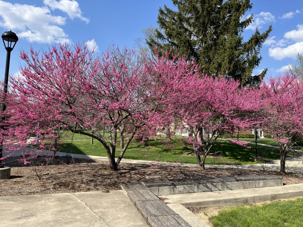 I visited Earlham College in Richmond, Indiana, over two fresh spring days in April as part of a counselor fly-in event. The redbud trees were in full dark-pink bloom and the oaks were just leafing out.